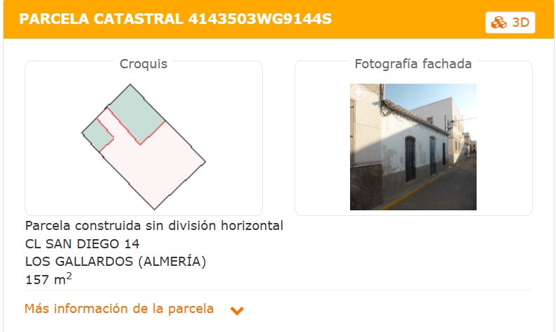 Se vende parcela urbana de uso residencial en la calle San Diego de los Gallardos, con una superficie de 157 m2. La propiedad está ubicada entre 2 calles céntricas del municipio.